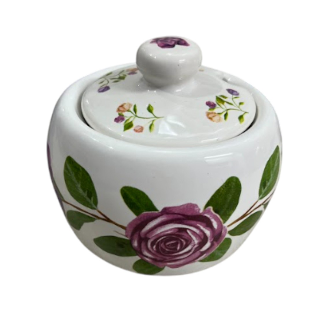 Açucareiro Holambra Scalla em cerâmica de alta qualidade, com estampa floral delicada e acabamento resistente. Ideal para compor uma mesa posta charmosa e organizar o dia a dia com elegância.